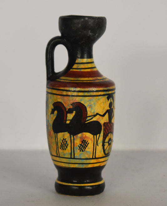 Ancient Greek lekythos - Warriors and chariot - Miniature Ceramic piece - Geometric Period - Handmade in Greece