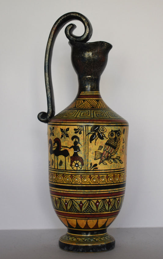 Ancient Greek lekythos - warriors,chariot,ship,athenian owl - Ceramic piece - Geometric Period - Handmade in Greece