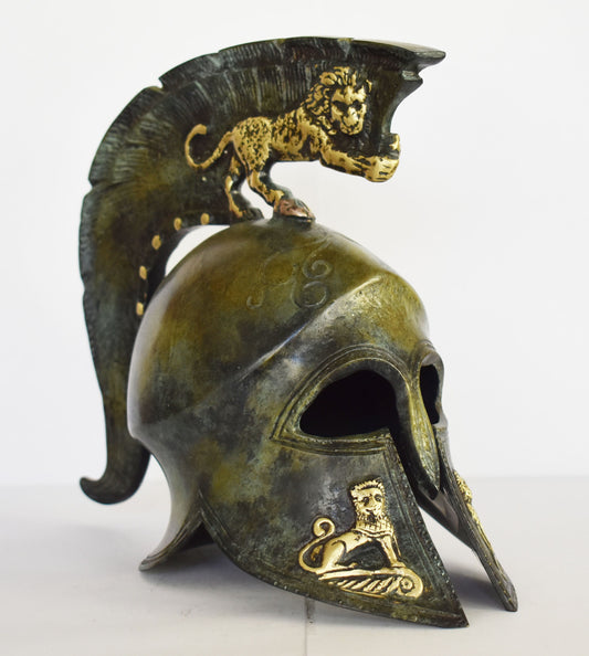 Ancient Greek Spartan Corinthian Helmet - Lion and Sphinx - Pure Bronze Statue