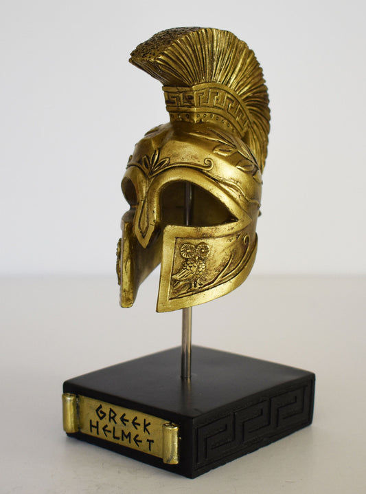 Ancient Greek Spartan Corinthian Helmet - Goddess Athena Symbol - Physical Battle Protection - Museum Reproduction - Polyresin Statue