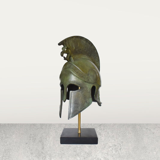 Ancient Greek Spartan Corinthian Helmet - Marble Base - Small - Museum Reproduction - pure bronze statue