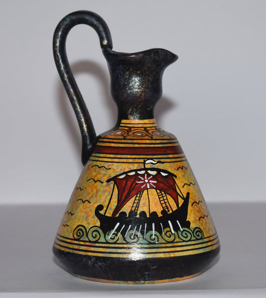 Ancient Greek vase - athenian owl and ship - Miniature Ceramic piece - Geometric Period - Handmade in Greece