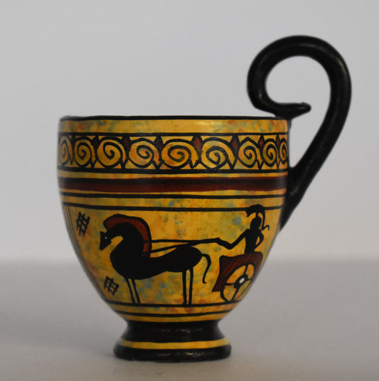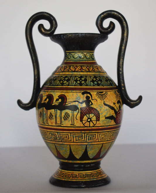Ancient Greek vase - warriors and chariot - Miniature Ceramic piece - Geometric Period - Handmade in Greece