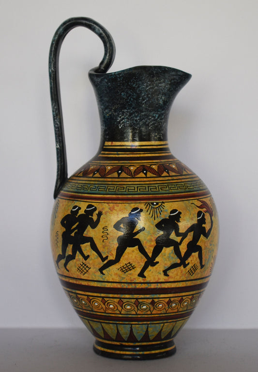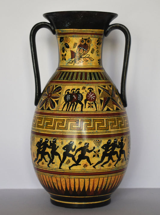Ancient Greek vase - warriors and marathon runners - Ceramic piece - Geometric Period - Handmade in Greece