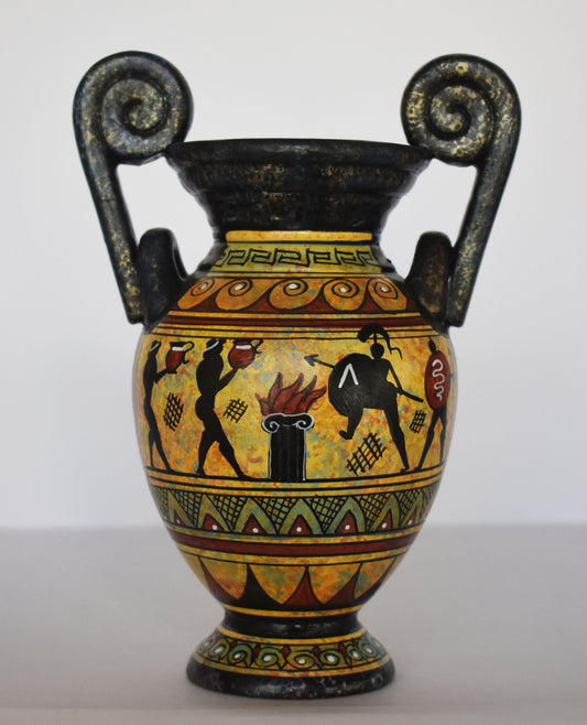 Ancient Greek vase - warriors - Ceramic piece - Geometric Period - Handmade in Greece