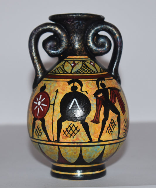 Ancient Greek vase with warriors - Miniature Ceramic piece - Geometric Period - Handmade in Greece
