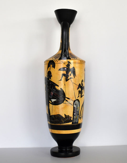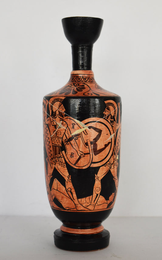 Achilles Hector Menelaus Paris Patroclus - Heroes of Trojan War, Homer's Iliad - Red Figure - Small - Museum Replica - Lekythos Vase