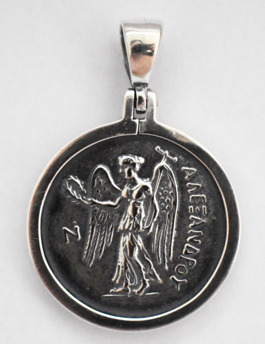 Athena - Greek Roman Goddess of Wisdom - Nike, Goddess of Victory - Babylon Stater, 317-311 BC - Coin Pendant - 925 Sterling Silver