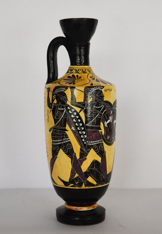 Achilles Hector Menelaus Paris Patroclus - Trojan War, Homer's Iliad - Red Figure Vase - Small - Museum Replica - Lekythos