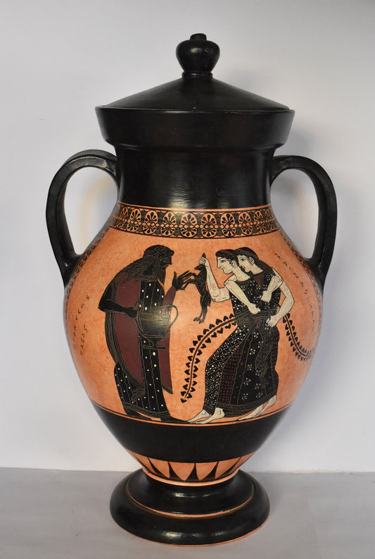 Athena Poseidon Dionysus Maenads - Meander and Floral Design - Amphora - 575-525 BC - Amasis Painter - Ceramic Vase