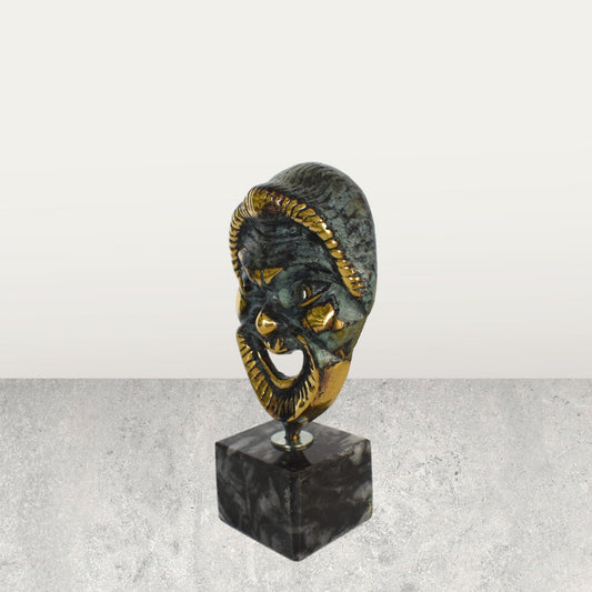 Comedy Mask - One of the final three principal Dramatic forms in the Theatre of Classical Greece - Decorative - Marble Base - pure bronze