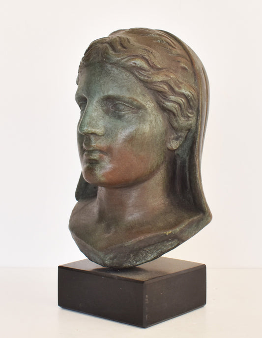 Demeter Ceres - Ancient Greek Roman Goddess of Agriculture and Harvest - Marble Base - Museum Reproduction - Head Bust- Bronze Colour Effect