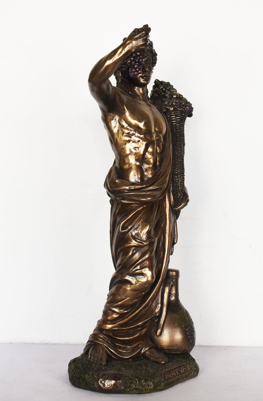 Dionysus Bacchus - God of wine and grape harvest - Represented the wild and carefree aspects of Greek society - Cold Cast Bronze Resin