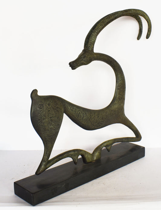 Graceful Ibex - Wild Goat - pure Bronze Sculpture - marble base - Symbol of Energy, Long Life, Fertility
