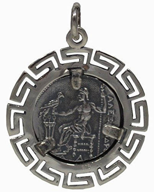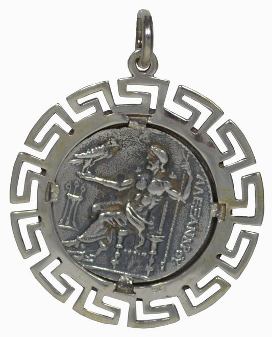 Alexander The Great - Macedonian King - Meander Motif - Lysimachos Coin - Pendant - 925 Sterling Silver