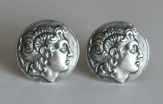 Alexander The Great - Macedonian King - Son of Philip, Student of Aristoteles - Lysimachos - Cufflinks - 925 Sterling Silver