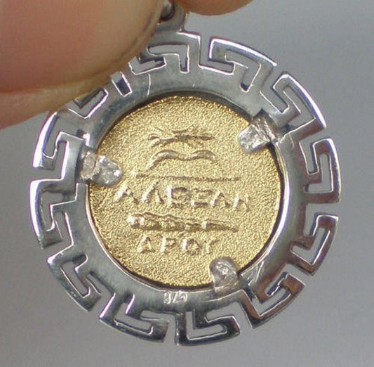Alexander The Great - Macedonian King - Meander Motif - Lysimachos Coin - Gold Plated Pendant - 925 Sterling Silver