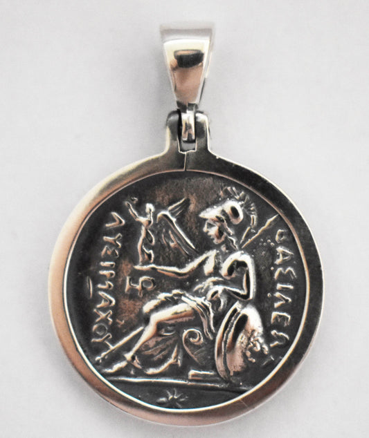 Alexander The Great - Macedonian King - Son of Philip, Student of Aristoteles - Lysimachos Coin Pendant - 925 Sterling Silver