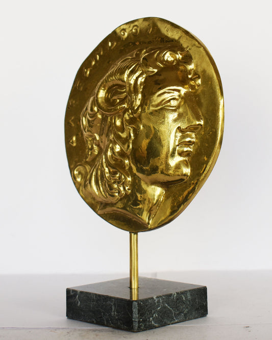 Alexander the Great - Macedonian King - son of Philip - marble base - pure Bronze Sculpture