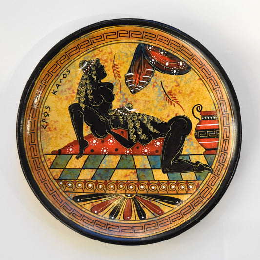 Homoerotic Scene between Two Females - Athens, 500 BC - Representation of Red Figure Vessel - Ceramic - Meander design - Handmade in Greece