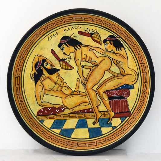 Homoerotic Scene between Three Males - Athens, 500 BC - Love is shown more in deeds than in words - Ceramic - Handmade in Greece