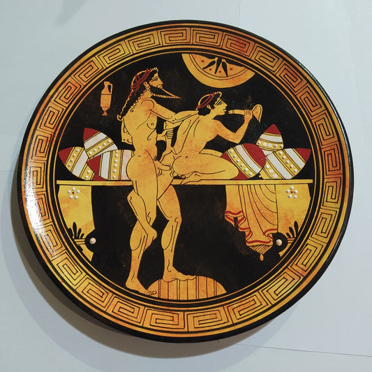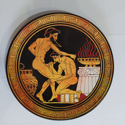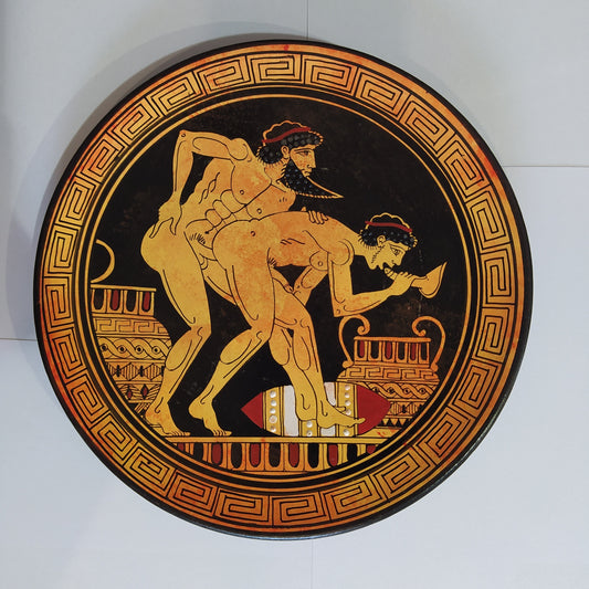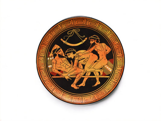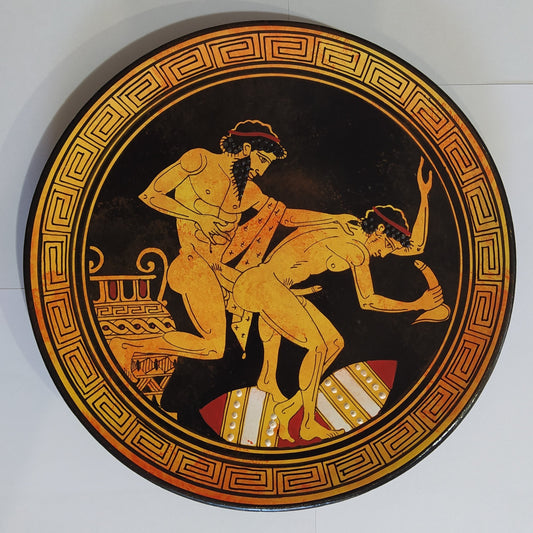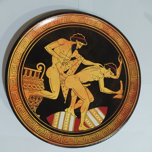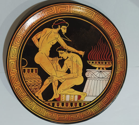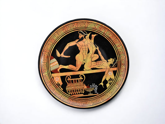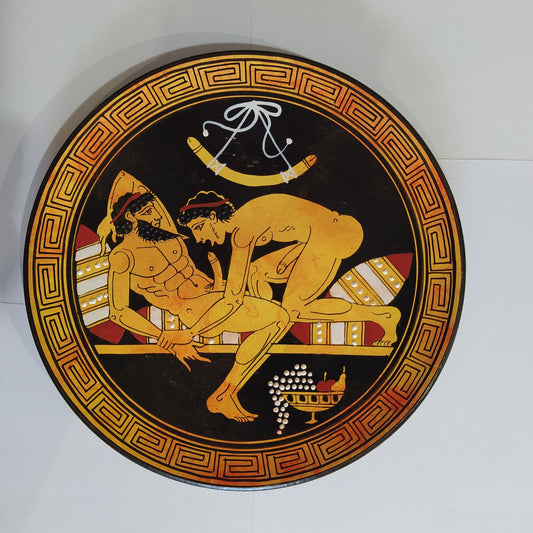 Homoerotic Scene between Two Males - Athens, 450 BC - Love is such a powerful force - Ceramic - Meander design - Handmade in Greece
