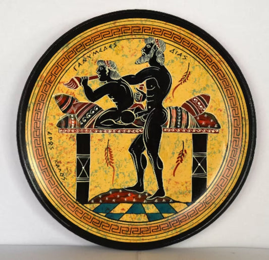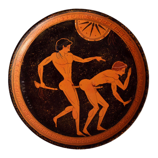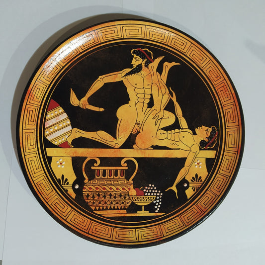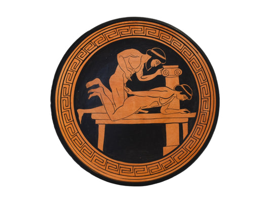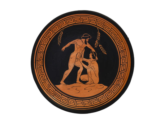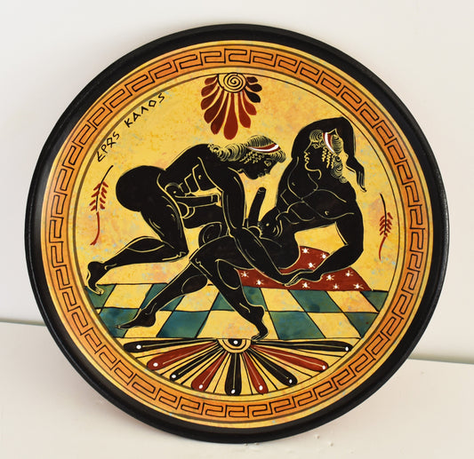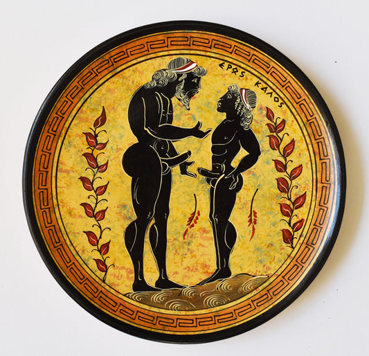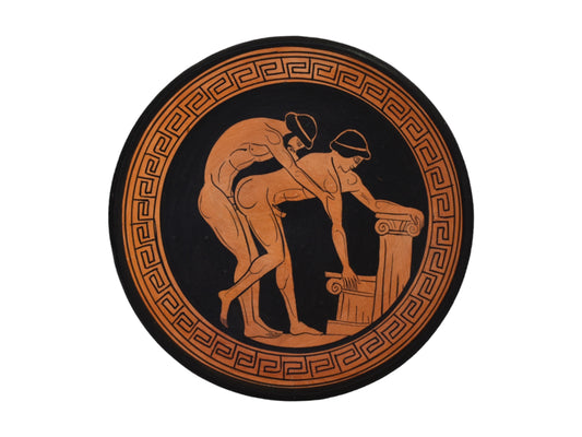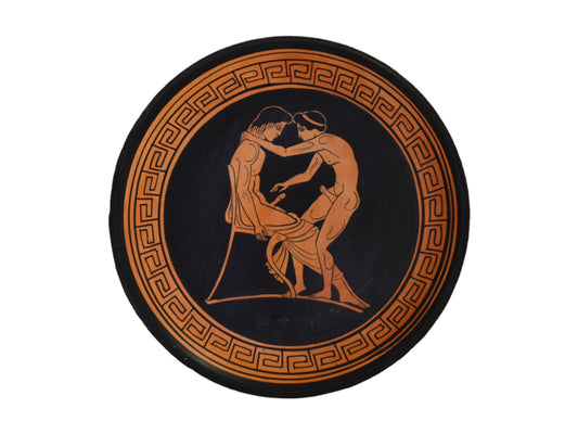 Homoerotic Scene between Two Males - Athens, 500 BC - Representation of Red Figure Vessel - Ceramic - Meander design - Handmade in Greece