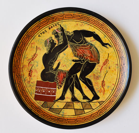 Homoerotic Scene between Two Males - Athens, 500 BC - You always gain by giving love - Ceramic - Meander design - Handmade in Greece