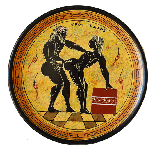 Homoerotic Scene between Two Males - Athens, 500 BC - Love recognizes no barriers - Ceramic - Meander design - Handmade in Greece