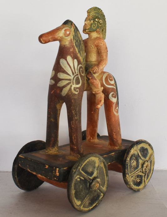 Horse Rider - Wheels Toy - Athens, Attica - 500 BC - Miniature - Museum Reproduction - Ceramic Artifact