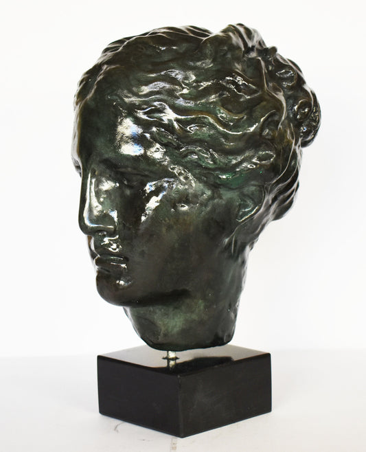 Hygieia - Greek Goddess of Health, Cleanliness and Hygiene - Marble Base - Museum Reproduction - Head Bust- Bronze Colour Effect