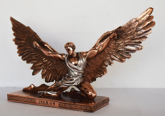 Icarus Ikaros- Son of the master craftsman Daedalus - Escape from Crete with Wings from Wax and Drowned - Cold Cast Bronze Resin