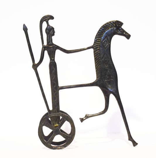Ancient Greek Chariot - Goddess Athena holding a spear - pure Bronze Sculpture