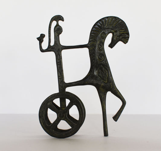 Ancient Greek Chariot - goddess Athena with spear - pure Bronze Sculpture