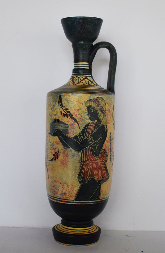 Lekythos - Storing Oil and Funerary Rites Vessel - Aphrodite - Goddess of Love and Beauty - Floral design - Ceramic Vase