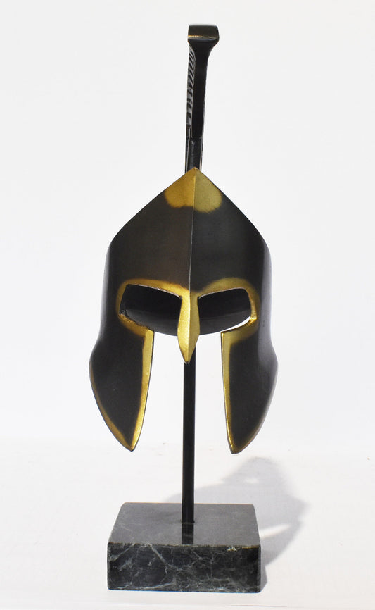 Leonida's Helmet - Spartan king - Battle of Thermopylae - 480 BC - 300 Spartans - Marble Base - Pure Bronze Statue