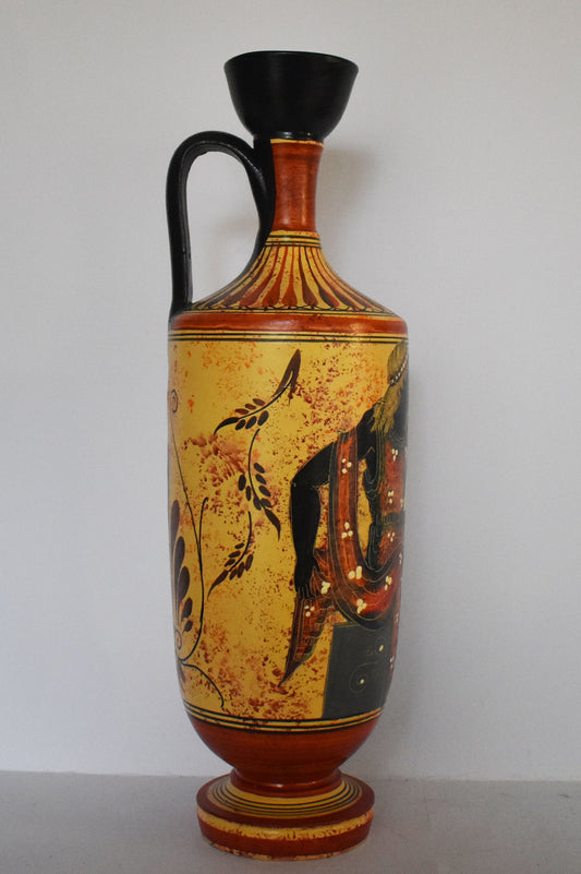 Lekythos - Storing Oil and Funerary Rites Vessel - Zeus and Ephebe - Floral design - Ceramic Vase