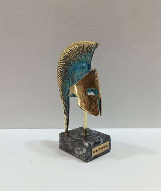 Leonida's Helmet - Spartan king - Battle of Thermopylae, 300 Spartans - protected his homeland and his values - marble base - pure bronze