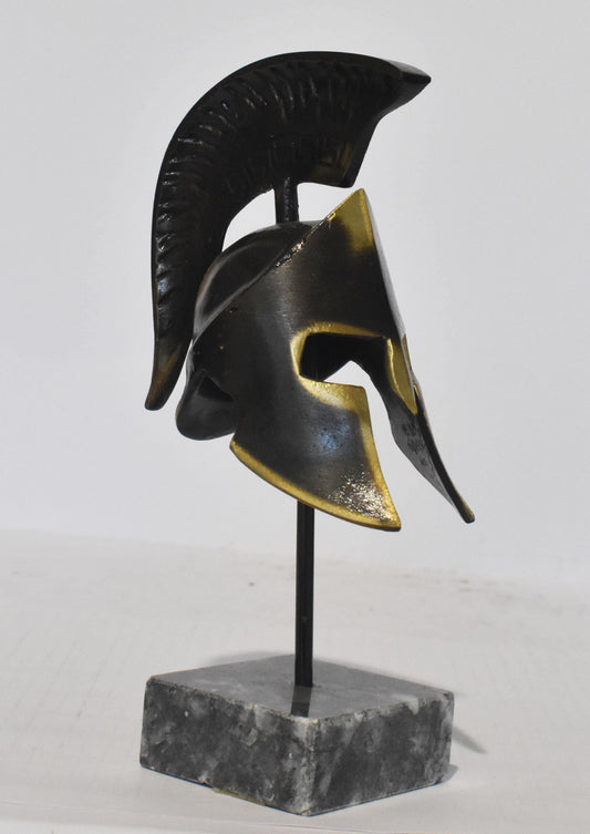 Leonida's Helmet - Spartan king - Thermopylae - one of the most brilliant events of the ancient Greek history - marble base - pure bronze