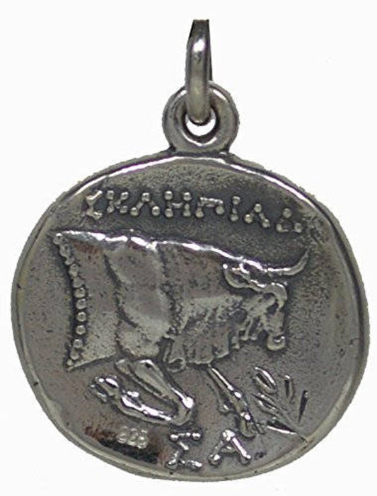 Lion Head -Symbol of majesty - Bull - Symbol of Strength - 398-365 BC - Samos Obol - Coin Pendant - 925 Sterling Silver