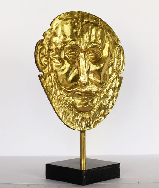 Mask of Agamemnon - Mycenaean King Funeral Mask Replica - marble base - pure Bronze Sculpture