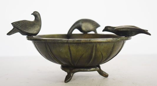 Decorated bowl with turtle-doves, Ancient Greek Vessel - Museum Replica - pure Bronze Sculpture