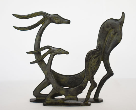 Complex with 2 Graceful Ibex - pure Bronze Sculpture - Symbols of Energy, Long Life, Fertility