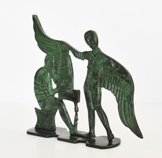 Daedalus and Icarus - Ancient Greek Myth - A skillful Architect and Craftsman and his Son with the Tragic End - pure bronze statue