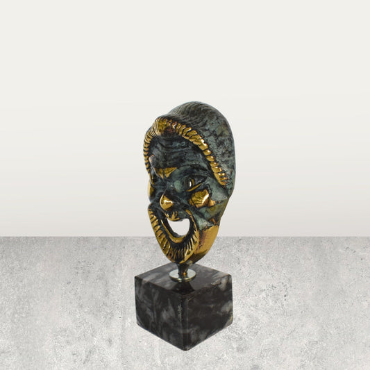 Comedy Mask - Ancient Greek Theater - Decorative - Marble Base - pure bronze statue
