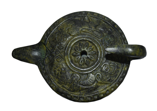 Bronze Oil Lamp - Eternity Symbol and Floral Design - Athens, Attica - 500 B.C. - Ancient Greek Reproduction - Pure Bronze Sculpture