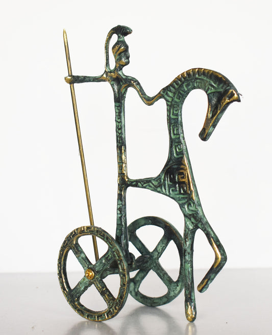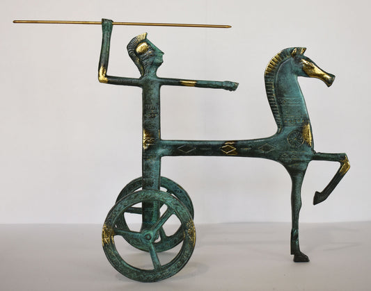 Athena Minerva with Spear on Chariot - Greek Roman Goddess of Wisdom, Handicraft and Warfare - pure bronze statue