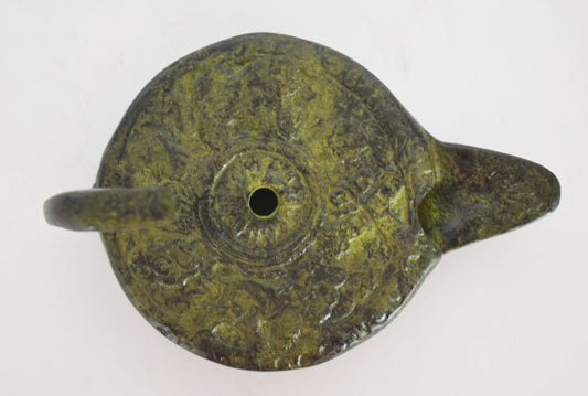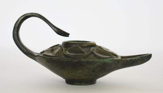 Bronze Oil Lamp - Snake and Leaves Design - Athens, Attica - 500 B.C. - Small - Ancient Greek Reproduction - Pure Bronze Sculpture