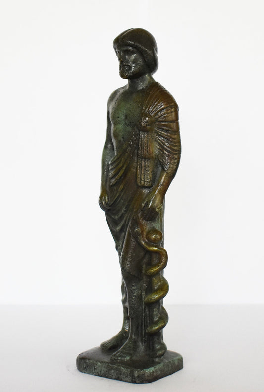 Asclepius - Ancient Greek God of Medicine and Doctors -Father of Hygeia, Iaso, Panacea, Aegle - pure bronze statue