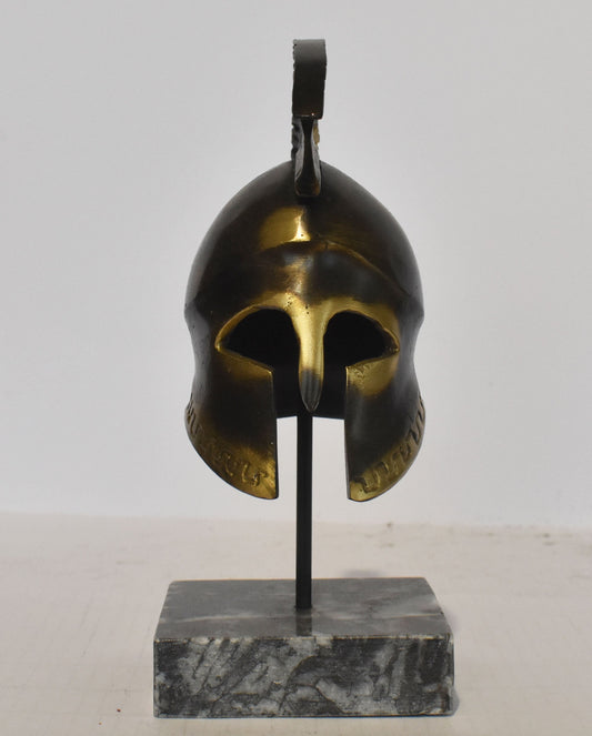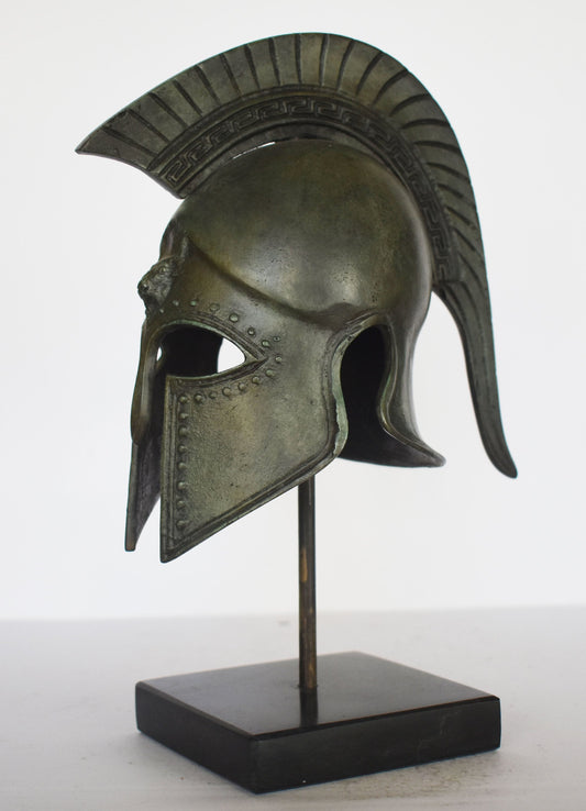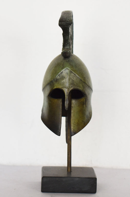 Ancient Greek Spartan Corinthian Helmet - Eternity Motif - marble base - museum reproduction - pure bronze statue
